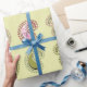 Elegantes Verpackungspapier, das für viele Feiern mit rosa und grüner Paisley-Grafik verwendet werden kann.