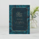 Elegante Hochzeitskarte Save the Date in einem formaleren Stil mit einem klassischen Layout aus goldenen Rahmen und Text mit einem verzierten Paisley-Rahmen. Dieses Beispiel fügt eine moderne Touch mit seinem Hintergrund in schimmernd aquamarin. Fügen Sie Ihre Veranstaltungsdetails in einem Serif-Schriftart hinzu, um die typische Anziehungskraft des Events zu erhalten. Suchen Sie ID767, um andere Farboptionen für dieses Design zu sehen.