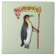 Ein Beispiel für eine Paläeudyptes, eine ausgestorbene Art von Pinguin. Das war ein Riesenvogel, der bis zu zwei Meter lang sein konnte. Dieses Küken wie ein weißer Pinguin hält eine Banane mit ihrem Namen auf. Ein Design für jeden, der Pinguine Liebe.