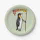 Ein Beispiel für eine Paläeudyptes, eine ausgestorbene Art von Pinguin. Das war ein Riesenvogel, der bis zu zwei Meter lang sein konnte. Dieses Küken wie ein weißer Pinguin hält eine Banane mit ihrem Namen auf. Ein Design für jeden, der Pinguine Liebe.