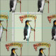 Ein Beispiel für eine Paläeudyptes, eine ausgestorbene Art von Pinguin. Das war ein Riesenvogel, der bis zu zwei Meter lang sein konnte. Dieses Küken wie ein weißer Pinguin hält eine Banane mit ihrem Namen auf. Ein Design für jeden, der Pinguine Liebe.