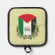 "Die palästinensische Fahne, umgeben von Olivenzweigen mit dem Satz "Wir werden zurückkehren."