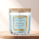 A label for candles featuring a gold foil border and pale blue interior.