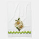 Frisch weiß färbt sich auf Ihre Wahl der Hintergrundfarbe. Das hübsche, Vintage inspirierte Küchentuch wird von einem grünen Reckenständer abgerundet.