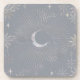 Ein blauer Mond und Sterne im funkelnden Himmel.