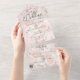 Dieses All-in-One Hochzeitsangebot besticht durch ein zartes, hellrosa Rosenbukett, das ein Gefühl von Anmut und Eleganz ausstrahlt. Es ist der Inbegriff zeitloser Schönheit, die Bühne für Ihren unvergesslichen Anlass. Die All-in-One Hochzeitseinladungen sind schön und praktisch, indem sie die Hochzeitseinladung mit einer leicht zu entfernenden perforierten UAWG-Postkarte kombinieren. Sie sind auch schnell und einfach für den Versand vorbereitet. Einfach auf die Einladung richten, die Rückenklappe und das Siegel mit den beiliegenden Klarsichtstickern falten. Sobald Ihre Gäste die voradressierte Einladung erhalten, reißen sie einfach die perforierte RSVP-Karte ab und lassen sie in der E-Mail ablegen. Der QR-Code erlaubt es Ihren Gästen, einfach auf Ihre Hochzeitswebsite zuzugreifen, um Informationen zu erhalten, wie zum Beispiel Empfang und Abendessen.