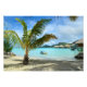 Foto einer Palme am Sandstrand eines luxuriösen Hochwasserurlaubsortes auf der tropischen Insel Bora Bora, in der Nähe von Tahiti im pazifischen Archipel Französisch-Polynesien. Eine tolle Dekoration an der Wand!