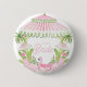This Bachelorette Weekend "Team Bride" button has a preppy design featuring pink and green Palm Beach styled cabana, pool chairs and umbrellas surrounded by palm trees.