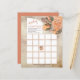 Bohemische wasserfarbene getrocknete Terrakotta Hydrangeas und Palmen Blätter Blumenmädchen "Baby Shower Bingo" Design mit Blume auf einem Imitat Sand Aquarell auf der Vorderseite und solide Terrakotta auf der Rückseite. Composite Design von Holiday Hearts Designs (Rechte vorbehalten).
