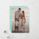 Benutzerdefinierte Foto Mele Kalikimaka-Karte mit einem Foto auf der Vorderseite und einem grünen Muster mit Palm-Blätter auf der Rückseite.