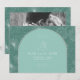 Eine Kunstdarstellung von Palmblättern über Aquarellgrün mit weißem Blätter und Muscheldesign über Aquarellbogen mit Bräunungsrahmen. Personalisieren Sie das Foto auf der Rückseite.