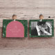 Arch-Design mit Linien-Kunst und Muscheldarstellungen und Hintergrund aus Palmenblättern. Rosa und grüne Farbe. Personalisieren Sie mit Ihrem eigenen Save the Date Foto auf der Rückseite.