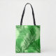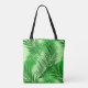 Die Tasche wird in tropischen Silhouetten aus Palmblättern in den Farben Smaragdgrün, Blattgrün und Zitronengrün auf pastellfarbenem, limatgrün gedruckt