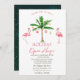 Aquarellpalme Weihnachtsbaum, Kugeln, rosa Flamingos auf weißem Hintergrund. Diese wunderschönen Weihnachtseinladungen sind ideal für Weihnachts-Dinner-Party Einladungen, Feiertagsgeschenke-Austausche, Weihnachts-Spendenaktionen, Einladungen für den Weihnachtsball und andere Veranstaltungen, die im Dezember stattfinden. Verwenden Sie einfach die Vorlagenfelder, um eigene Ereignisinformationen hinzuzufügen.