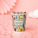 Mit diesen Inspirierten Hochzeitspapiertassen aus dem Mittelalter fügen Sie Ihrer Hochzeit oder einem anderen besonderen Ereignis eine farbenfrohe Retro-Touch hinzu.Das Vintage Design zeichnet sich durch seine rauen Formen in warmen Farben aus, die aquamarin blau, kalzurblau, orange, sonnig gelb, rosa, magenta und lila Set vor einem hellcremefarbenen Hintergrund sind.