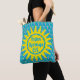 Dieser türkisfarbene, mit bunten Palmen bedeckte Palm Springs Tote-Sack macht so viel Spaß! Eine große Sonne in der Mitte hält den Text, der mit einem anderen Ziel oder einer anderen Nachricht personalisiert werden kann. Das Design erinnert an das moderne Ambiente der Wüstenoase Palm Springs, Kalifornien. So cool am Pool!