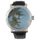 Uhr, Klassische Damenuhr mit schwarzen Lederarmband