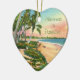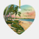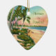 Fantastisches Vintages Retro-Postkartenbild, das auf einem Keramik-Ornament reproduziert wurde. Die Palmen, der Sand und das Wasser machen den perfekten Strand aus. Kaufen Sie, wie es ist, oder ändern Sie den Text - Weihnachten im Paradies!" zu sagen, was Sie wollen.