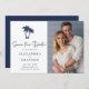 Palm Tree Beach Navy Wedding Save the Date - bietet Ihr Lieblings-Foto, tropische Palmen und moderne Typografie. Sie können unsere Save the Date Vorlage ganz einfach mit Ihren Daten anpassen.