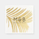 Schick, modern und minimalistisch, Palmenblatt oder mit Monogramm tropische Hochzeitsnapkins mit großen Imitaten goldenen Folie mit Palmblättern und schlichtem, schwarz-weißem Logo-Design auf der Oberseite bedruckt. Fügen Sie Ihre Initialen und das Hochzeitstermin für ein einfaches Design hinzu, das einen großen Einfluss auf einen Empfang, Brautparty oder Probe Dinner für eine Hochzeit in Urlaubsort haben wird.