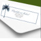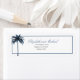 Ein blau-weiß Palm Tree elegante persönliche Rücksendeadressen-Aufkleber. Eine elegante Palme ist über den Namen. Die Informationen werden leicht auf Ihre geändert. Das moderne Skript kann leicht für Ihre eigenen Informationen geändert werden. Das individuelle Label ist eigenständig, aber es gehört zu einer Suite von Hochzeitsfeststellungen bei Just Fine Designs. Sehen Sie die Sammlung über den Link auf dieser Seite .