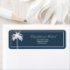 Ein blau-weiß Palm Tree elegante persönliche Rücksendeadressen-Aufkleber. Eine elegante Palme ist über den Namen. Die Informationen werden leicht auf Ihre geändert. Das moderne Skript kann leicht für Ihre eigenen Informationen geändert werden. Das individuelle Label ist eigenständig, aber es gehört zu einer Hochzeitssuite bei Chessie's Fine Designs.