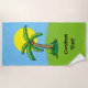 Cartoon-Abbildung einer Palme. Benutzerdefinierte Hintergrundfarbe. Benutzerdefinierter Text.