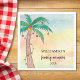 Diese Wiedersehen-Papierservietten sind mit einer Palme auf einem farbenfrohen Aquarell dekoriert. Einfach anpassbar. Original Wasserfarbe © Michele Davies.