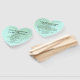 Hochzeitsfeier mit tropischen Palmenfronten in Herzform. Erstellen Sie ein Fan-Programm für eine Feier im Freien, um die Hitze und Fehler behalten. Dieses Programm ist hellaquablau mit einem Hintergrund von langen Blätter aus Palmen. Passen Sie schwarzen Text auf beiden Seiten für ein einfaches und lässiges Ereignis an.