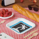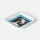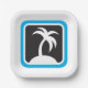 Ein Palm-Symbol mit schwarzem Hintergrund und blauem Rahmen. Dieses Design wirkt auf diese Paper-Teller sehr effektiv