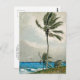 Eine schöne Postkarte mit dem Gemälde des amerikanischen Künstlers Winslow Homer (1836-1910), Palm Tree, Nassau (1898). Eine Landschaft mit hohen Palmen, die unter stürmischen Bedingungen in den Bahamas blühen, mit bewölktem Himmel und blauem Wasser.
