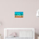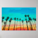 Dieser Kunstdruck zeigt ein Gemälde von Palmen-Silhouetten gegen einen Regenbogen-Sonnenuntergang.