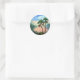 Ein tropischer Blick auf die lebendigen Sonnenuntergang Palmen Reflektionen.