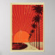 Vintag+postcard California palm+tree sunset sun tropischer Strand Ozean