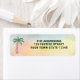 Die Rücksendeadressen-Aufkleber im Inselstil sind mit einer handbemalten Palme dekoriert, die mit Lichtern und Bausteinen auf einem Aquarell geschmückt ist.