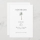 Palm Tree Save the Date Karte. Weißer Hintergrund. Digital.