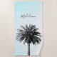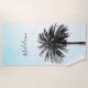 Eine moderne, elegante, schwarz-weiße Palme sitzt auf einem Hintergrund eines blau abgestuften Himmels. Elegantes und elegantes persönliches Strandtuch.