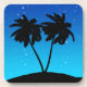 Untersetzer in einer schwarzen Silhouette von Palmen vor einem Abend blauen Farbverlauf mit Sternen