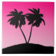 Keramik Kacheln in einer schwarzen Silhouette von Palmen gegen einen Morgengrauen rosa Hintergrund
