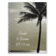 Erstellen Sie ein Gästebuch oder ein Ratgeber, wenn Sie das natürliche Palm Tree Silhouette Beach Wedding Spiral Notebook mit den Namen der Braut und des Bräutigams und dem Datum der Verheiratung ihrer tropischen Insel personalisieren. Dieses Tropic Thema angepasste Meeresfrüchte Hochzeitsbuch zeigt ein Naturfoto einer silhouetted Palme an der Küste des Ozeans in den Tropen.