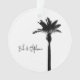 Palm Tree Silhouette in schwarz auf weißem Hintergrund mit individuelle Name & NAME in schwarz, Muster auf der Rückseite. Leicht zu personalisieren Text, Textfarbe, Schriftart. Ideal für JEDEN Besondere Anlass, Tropenurlaub, Reiseandenken, Beach Thema, Geburtstagsparty Gunst, Jubiläumsschmuck, Küstenstreifen. Modern, Chic, Spaß. Mix und Match komplette Palm Tree Collection von TMCdesigns.