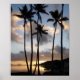 Stunning scenery of Hawaii at twilight with the fading light creating silhouettes of the palm trees and coast line.