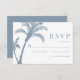 Palm Tree Tropical Beach Dusty Blue Wedding RSVP Karte