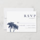 Palm Tree Tropical Beach Navy Wedding RSVP Card Karte
