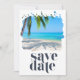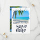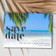 Erleben Sie Ihren Hochzeitstag mit dieser Palm Tree Tropical Beach Hochzeit Save the Date - ein Flüstern des Paradieses, das Ihre Gäste bei Ihrer Hochzeitsfeier am Strand erwartet. Passen Sie Ihre Hochzeitsdetails auf der Rückseite an.