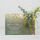 Beach Lights Palm Tree Tropical Probe Dinner Einladungen - mit Saitenbeleuchtung und Palmen auf einem duskischen Hintergrund mit eleganten Schriftart. Die vollständige Entsprechungskollektion finden Sie unten in diesem Design.
