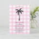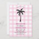 Palm Tree White Pink Checkered QR Code Bridal Einladung