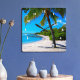 Palm Tree White Sand Hawaii Tropical Beach Foto Quadratische Wanduhr