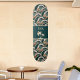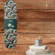 This Polynesian inspired vintage look skateboard features a pattern of palm trees and waves in green -- with a hint of teal, tan, brown, and creamy off-white. Your monogram initials appear in light tan against a color block of the dark green, along with palm trees, for a customized skateboarding experience. If you or your recipient loves the beach, this tropical skateboard might be the choice for you! Make sure to type your initials in the Personalize section.