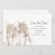 Moderne Tropical Palms Baumkronen Typografie Ankündigung Datum freihalten Karte mit QR-Code auf der Rückseite, die Sie leicht anpassen können für Ihre Ankündigung. Fügen Sie Ihren QR-Code und Ihre Ankündigungsdetails hinzu, um eine Art Ankündigung Datum freihalten zu erstellen. Diese Karte kann leicht für andere Meilensteine-Ereignisse in Ihrem Leben verwendet werden